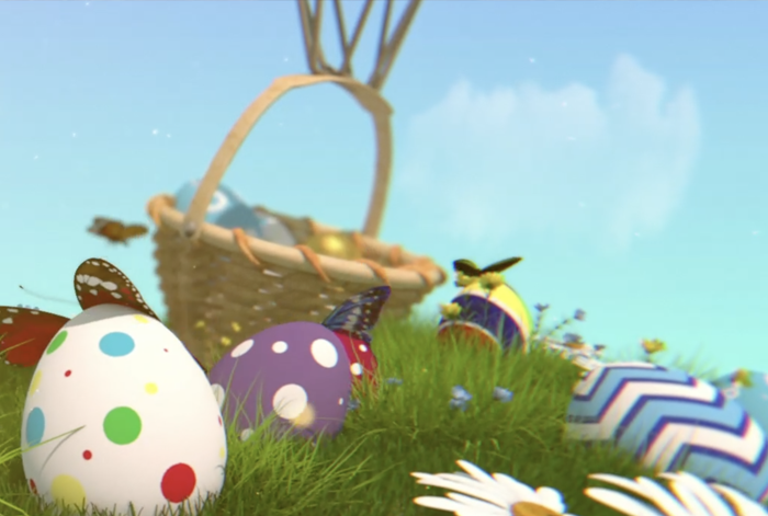 Animated, 3D Easter bunny, eggs, holiday animation in After Effects.